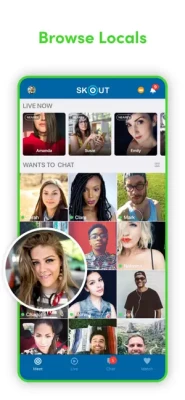 Instantly meet people near you or around the world. Discover new friends at a local bar or in Miami. Millions of people are connecting and meeting via Skout every day. Use exciting in-app features to increase your chances of friending or chatting!