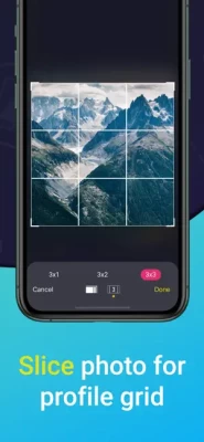+ Slice the photo for swipeable panorama (1:1, 2:3, 4:5, 9:16, 10:16, 16:9, 3:2, 5:4)
