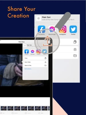 • Pick your photos • Organize them in the right order (Long tap a photo and drag to reorder it) • Select a transition to animate between photos • Choose your favorite music from our gallery or your own songs. • Select the slideshow's length to change the duration per photo. • Share it on Facebook, Instagram, Snapchat, YouTube or save it to your camera roll.
