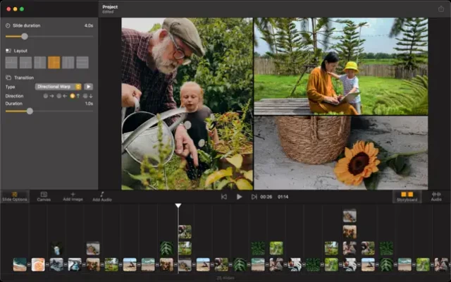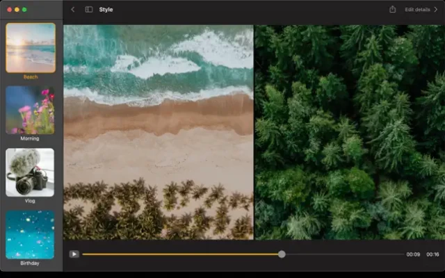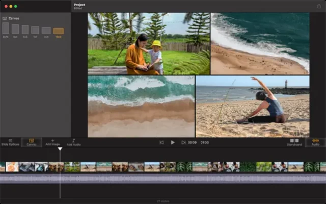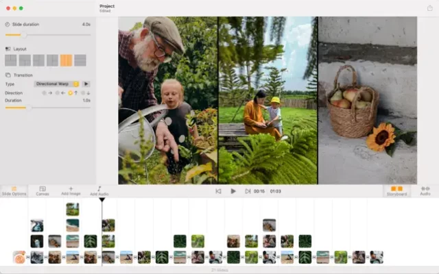 The app is very fun and easy to make slideshow videos. Starting by selecting photos and/or videos you want, then the application will automatically create a slideshow for you. After that, you can export or further edit the slideshow.