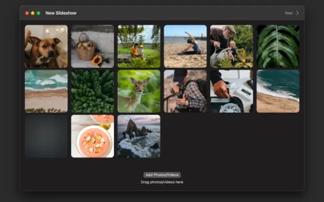 - Add / Drag photos to start making slideshow