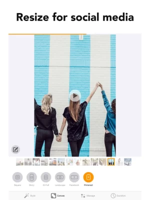 - Canvas sizes : Square, IG Story, IG Full, IG Landscape, Facebook & Pinterest