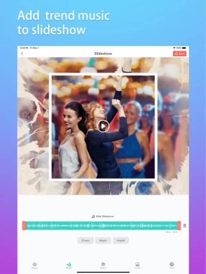 One of the main features of SlideShow Maker is the ability to import images and videos from your device's camera roll or photo library. You can then arrange the photos and clips in the order you want, and add transitions, music, and text to create a truly professional-looking slideshow. The app supports a wide range of video formats, so you can be sure that your slideshow will look great no matter where you share it.