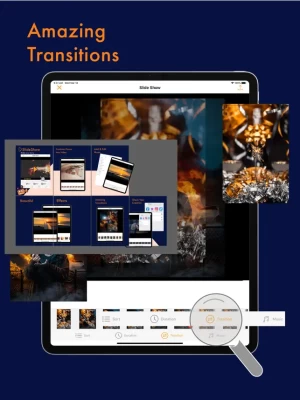 • Pick your photos • Organize them in the right order (Long tap a photo and drag to reorder it) • Select a transition to animate between photos • Choose your favorite music from our gallery or your own songs. • Select the slideshow's length to change the duration per photo. • Share it on Facebook, Instagram, Snapchat, YouTube or save it to your camera roll.