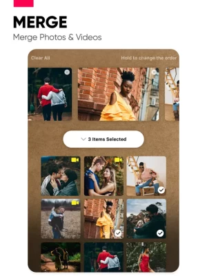 1. Select photos & video clips from your photos gallery or any Photos app