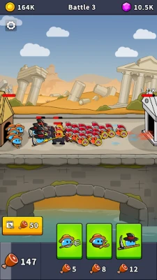 - Thu thập tiền xu sau mỗi trận chiến để nâng cấp quân đội của bạn, tăng tốc độ sản xuất lương thực và tăng cường độ kiên cố của pháo đành.