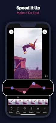 Take your visuals to the next level with over 40 stunning color filters. Give each scene a unique atmosphere and make your footage pop. Enhance the experience further by adding music from your personal library, turning your videos into unforgettable creations.Once you've crafted your masterpiece, it's time to share it with the world. Share your incredible slow-motion effects directly on Instagram and let your friends and followers be amazed by your talent. Watch their jaws drop as they witness the magic you've created!