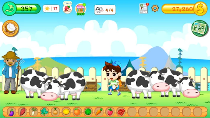 The game features a well-known vegetable style, but you may switch to a lateral view and perform tasks like digging, sowing, and watering. Animals like cows, sheep, and chickens are used to produce goods that are then sold and upgraded.