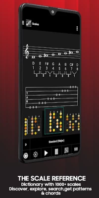 Expect extraordinary tools like a fingerpicking trainer, a transposer or a tone generator. Or a drum machine for songbook accompaniment or as a rhythm trainer. Or the innovative scale circle. It applies the principle of the circle of fifths to hundreds of scales and modes.