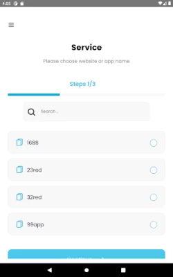 Step 1: Enter the country and name of the service you need. If there is no service in the list, choose the "any other" option.