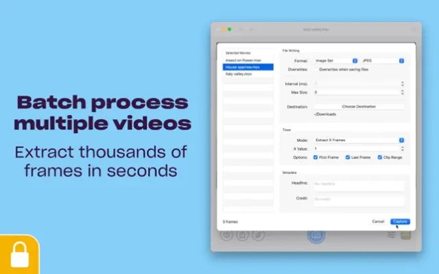 If you need to capture many images from your video, SnapMotion is up for the task. The app allows you to extract thousands of images from your video in batches. You can also create GIFs or MP4s out of your images.