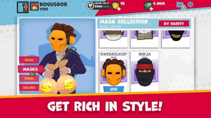 Choose between 150 MASKS and 30 different SUIT COLOURS to show off your own UNIQUE STYLE. Make sure you are memorable to others!