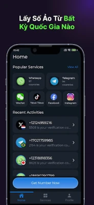 Ứng dụng của chúng tôi tập trung vào việc cung cấp các dòng chất lượng cao, không tái chế. Khi bạn yêu cầu một số điện thoại ảo cho OTP, bạn chỉ cần nhập số đó trên nền tảng đã chọn. Ngay sau khi dịch vụ gửi mã, chúng tôi sẽ gửi mã đó trực tiếp vào ứng dụng của mình. Bạn có thể nhận SMS an toàn và đảm bảo quá trình xác minh SMS của bạn được xử lý suôn sẻ mỗi khi bạn sử dụng một số điện thoại ảo mới.