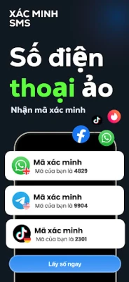 Bạn cần một số điện thoại ảo cho WhatsApp, Telegram hoặc Facebook? SmsCode cung cấp một kết nối chuyên dụng được đảm bảo hoạt động trên các nền tảng chính. Hệ thống của chúng tôi xử lý yêu cầu xác minh SMS một cách nhanh chóng. Việc nhận mã OTP WhatsApp của bạn diễn ra vô cùng liền mạch. Mọi thứ hoạt động hoàn toàn bằng kỹ thuật số ngay trên thiết bị của bạn, nghĩa là không cần thẻ SIM vật lý cho số điện thoại ảo của bạn. Bạn có thể dễ dàng quản lý việc xác minh SMS ở bất kỳ đâu.