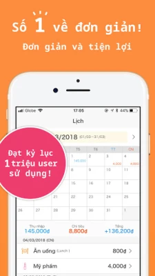 Bạn sẽ dễ dàng quan sát được tình hình thu nhập và chi tiêu trên lịch.