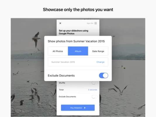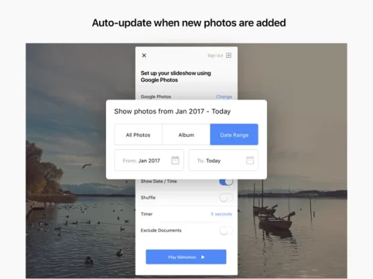 - Automatically updates when photos are added to / removed from your Google Photos library or Camera Roll