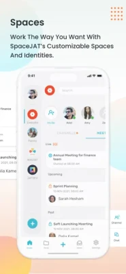 - The collaboration tools offered within SpaceJAT provide a dedicated space for all modes of communication, allowing you to enjoy isolated channels and scheduled or instant meetings.