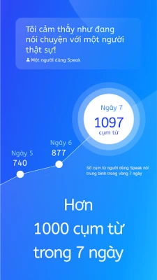 Không còn những cuốn sách giáo trình nhàm chán hay những cuộc trò chuyện một chiều nữa! Với Speak, bạn sẽ được trải nghiệm các bài thực hành ngôn ngữ tương tác và hấp dẫn như một cuộc trò chuyện thực tế. Hãy bỏ lối mòn học ngoại ngữ theo cách truyền thống và tải ngay ứng dụng Speak! Bạn sẽ cải thiện được sự lưu loát, được nhận phản hồi tức thời và trở thành người giao tiếp tiếng Anh tự tin, trôi chảy.