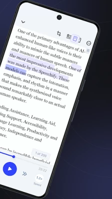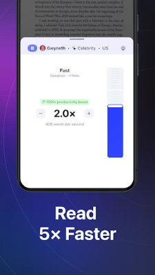 Giọng nói Al chất lượng cao của chúng tôi có thể đọc nhanh gấp 4,5 lần tốc độ đọc trung bình, vì vậy bạn có thể học nhiều hơn trong thời gian ngắn hơn. Hãy bắt đầu với 300 từ mỗi phút và từ từ tăng tốc độ lên nhanh như bạn cần.