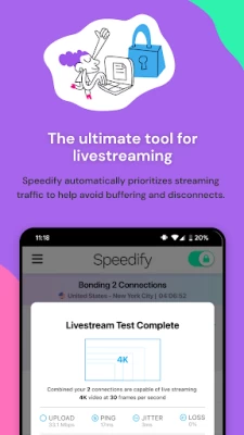 Turbocharge your internet with Speedify, the only app that combines multiple internet sources into one bonded super-connection for reliable, uninterrupted online experiences.