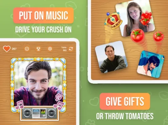 Meet people, give compliments and gifts, enjoy chatting and put on your favorite music while other players spin the bottle.