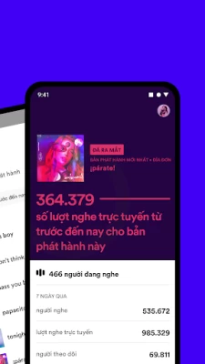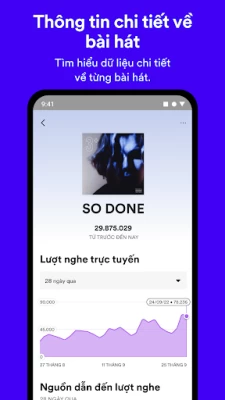 • Biết được số lượng người nghe trên toàn thế giới đang nghe nhạc của bạn theo thời gian thực bất cứ lúc nào.