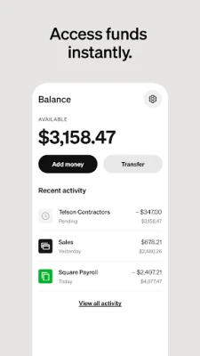 - Process transactions offline, offer preset tip amounts, and transfer funds instantly (or in 1–2 business days for free)