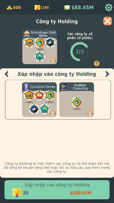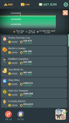 Hãy mua cổ phiếu của các công ty khởi nghiệp triển vọng nhất - nhận cổ tức và tạo công ty Holding quốc tế! Hãy mở các vùng mới, nâng cấp và phát triển