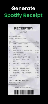 🔥 Get Receiptify now to explore your music stats! Our app offers personalized music insights similar to other popular wrapped stats apps like Spotistats, must.fm, stats.fm, snd.wave, superfan, Receiptify Heroku and more.