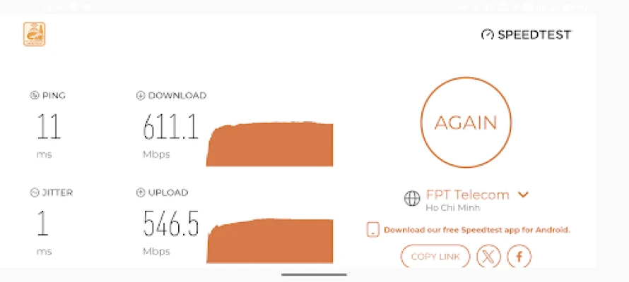 A: **Có.** App hoạt động trên mọi loại kết nối Internet – chỉ cần có mạng là đo được.