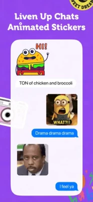 Enjoy an unlimited choice of the most hilarious and trendy stickers! Make your chats even more fun and creative!
