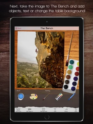 Begin by choosing one of the custom filters from the huge selection that you want. Then take your photo to The Bench, select the pen or paint bucket, and watch as your photo emerges as a work of art! It looks like you drew or painted it, and then took a photo! Move the photo around as you wish to give it that unique look that emulates a hand drawn feeling.