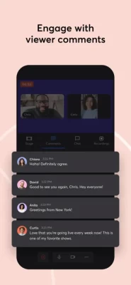 - See live comments and engage viewers on any platform (YouTube, Facebook, and others)