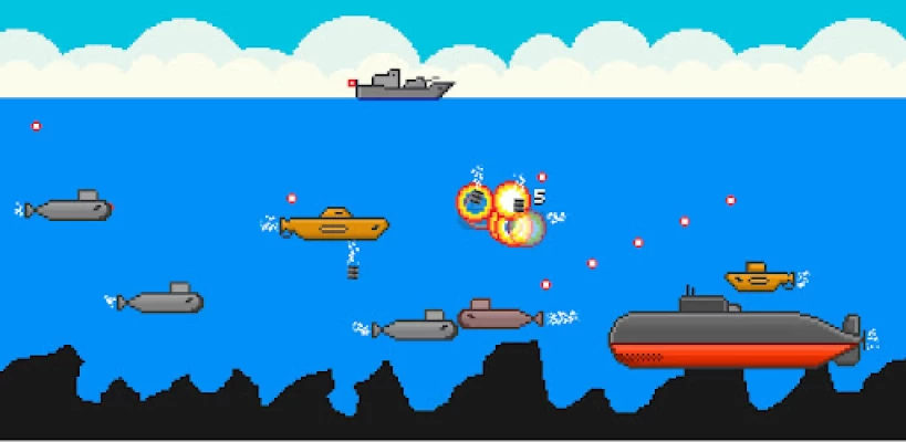Destroy submarines using depth charges while avoiding those nasty torpedoes. A classic arcade game in retro pixel art.