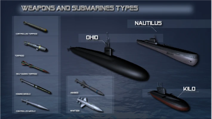 Submarines: - Akula Typhoon 941 - Kilo Class - US Ohio Class - HMS Anson - Akula III - HMS Astude - Vanguard Class Submarine - Poseidon A002 - Expeditor Special Submarine - Poseidon A003