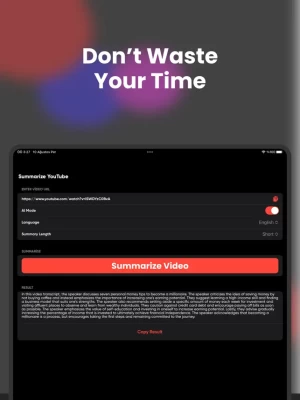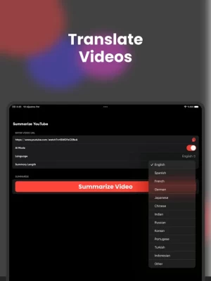 Harnessing the capabilities of advanced AI, our app creates these summaries, making it effortless for you to grasp the essence of lengthy videos in a fraction of the time. What's more, you can choose from a range of languages and summary lengths right within the app. Whether you're looking for a brief overview or an in-depth analysis, Summarizer for YouTube tailors the experience to your preferences.