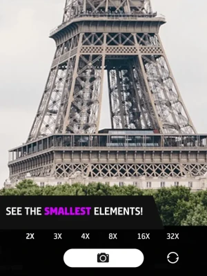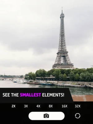 FEATURES: - Magnify from 1x to 4x - Photo Capture - Pinch to Zoom In/Out - Brightest Flashlight - Universal App for both iPhone & iPad - Pocket Telephoto Camera - Single Tap to Focus and Auto Focus Support - Universal App for Both iPad & iPhone