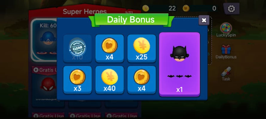 2. 30 famous superheroes and all heroes can be used in game start by watch video or collect by tasks or luck spin.