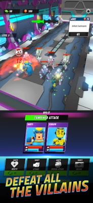 - Epic Battles: Engage in strategic battles against Doctor Cruel's minions. Adapt your lineup and tactics as you progress through challenging levels, ensuring your team's supremacy.