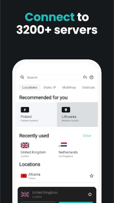 🌍 Global server selection — travel the world without leaving your room with more than 3200 VPN servers in over 100 countries.