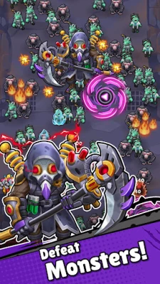 Collect and upgrade over 10 unique heroes. Mix classes—tank, DPS, support—for the ultimate synergy. Build your perfect team and level up their skills.
