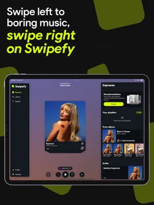 Level up your music game! It's time to say goodbye to boring tunes and hello to Swipefy! Unleash your music persona by swiping left on the dull and swiping right on Swipefy!