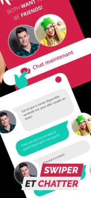 SwipeMoi est une application pour la France. Swipe les photos d’autres célibataires autour de toi et glisse vers la droite pour obtenir un Match. Si vous acceptez tous les deux, vous obtenez un Match et pouvez commencer à discuter en privé. SwipeMoi est l'application en ligne idéale pour rencontrer de nouvelles personnes près de chez toi.