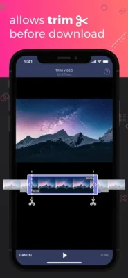 TRIM BEFORE DOWNLOAD - we have the technology to trim parts of video directly from device memory. Trim feature enables you to download only nice pieces drastically reducing needed time and battery (especially for long 4K videos).