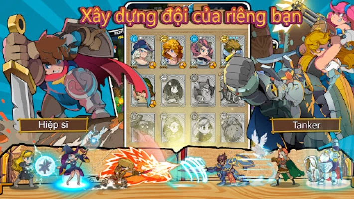 Ngươi sẽ là chỉ huy. Triệu tập và lãnh đạo các anh hùng của bạn để thách thức nhiều quái vật và ông chủ khác nhau. Đánh bại kẻ thù để có được nguồn lực nâng cấp người hùng của bạn để tiến xa hơn trong hành trình của bạn.