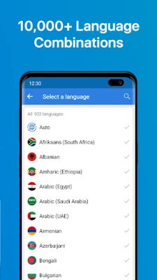 English (AU, UK, US, IN), French (FR, CA), Spanish (ES, MX), Arabic (EG, SA, UAE), Chinese (Simplified & Traditional), Portuguese (PT, BR), Swahili (KY, TZ), Urdu (IN, PK), Catalan, Czech, Croatian, Danish, Dutch, Esperanto, Finnish, German, Greek, Gujarati, Hebrew, Hindi, Indonesian, Vietnamese, Khmer, Macedonian, Malay, Malayalam, Marathi, Mongolian, Filipino, Bengali, Farsi, Hungarian, Bulgarian, Icelandic, Italian, Japanese, Javanese, Kannada, Korean, Lao, Latin, Latvian, Burmese, Nepali, Norwegian, Polish, Romanian, Russian, Serbian, Sinhala, Somali, Slovak, Sundanese, Swedish, Tamil, Telugu, Thai, Turkish, Ukrainian, Uzbek, Welsh, Zulu, Afrikaans, Amharic, Armenian, Albanian, Azerbaijani, Cebuano, Estonian, Galician, Georgian, Haitian Creole, Hausa, Hmong, Igbo, Irish, Kazakh, Kinyarwanda, Kurdish, Lithuanian, Luxembourgish, Malagasy, Maltese, Odia, Pashto, Punjabi, Sindhi, Slovenian, Sesotho, Uyghur, Yiddish, Yoruba.