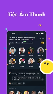 Bạn muốn luyện nói mà không cần phải học thuộc lòng? Thiếu ngôn ngữ? Chức năng TalkIn Voice Party cho phép bạn tham gia phòng giọng nói của những người học ngôn ngữ toàn cầu bất cứ lúc nào và tương tác với người bản xứ và những người học khác trong thời gian thực. Dù thảo luận về các chủ đề hàng ngày hay trao đổi văn hóa, Voice Party đều cung cấp cho bạn môi trường học ngôn ngữ tự nhiên để dễ dàng cải thiện kỹ năng diễn đạt bằng miệng của bạn. Đối với những người dùng mắc chứng lo âu xã hội, chỉ sử dụng tương tác bằng giọng nói ở đây, cho phép bạn luyện tập thoải mái hơn.