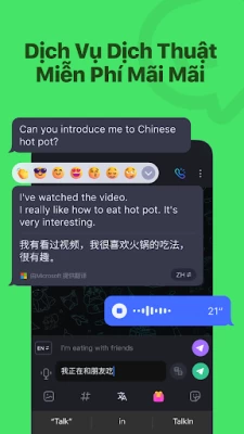 Dù bạn là sinh viên, công nhân hay đơn giản là yêu thích giao lưu văn hóa đa ngôn ngữ và toàn cầu thì TalkIn là sự lựa chọn tốt nhất dành cho bạn. Thông qua các bữa tiệc thoại, trao đổi ngôn ngữ một-một và tương tác văn hóa toàn cầu, TalkIn giúp việc học ngôn ngữ trở nên thú vị và hiệu quả hơn. Hãy tải xuống ngay để bắt đầu hành trình học ngôn ngữ toàn cầu của bạn và kết bạn mới từ khắp nơi trên thế giới!
