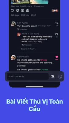 Duyệt qua các bài đăng động từ người dùng trên khắp thế giới để tìm hiểu về cuộc sống, văn hóa và trải nghiệm học tập của họ. Chứa nội dung đa chiều như ngôn ngữ, văn hóa, ẩm thực, phong cảnh và cuộc sống. Cho dù bạn muốn thích, bình luận hay tham gia thảo luận, các bản cập nhật toàn cầu của TalkIn đều cho phép bạn trải nghiệm "du lịch toàn cầu" mà không cần rời khỏi nhà và mở rộng tầm nhìn quốc tế của mình.