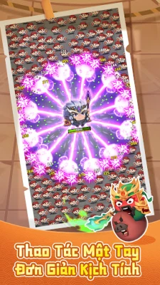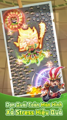 Vô số quái xuất hiện, quét sạch quái toàn màn hình không để sót một con. Một mình vượt qua ngàn quân vạn mã, di chuyển linh hoạt, phá vỡ vòng vây, dễ dàng vượt ải, thống trị Tam Quốc!